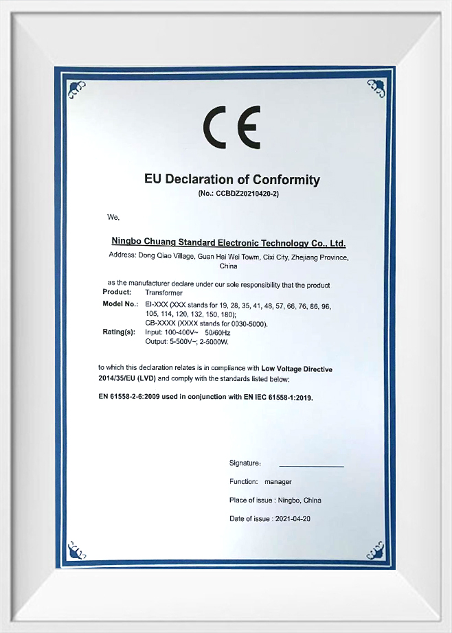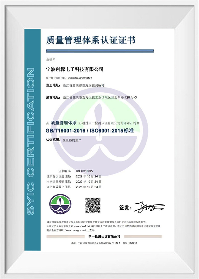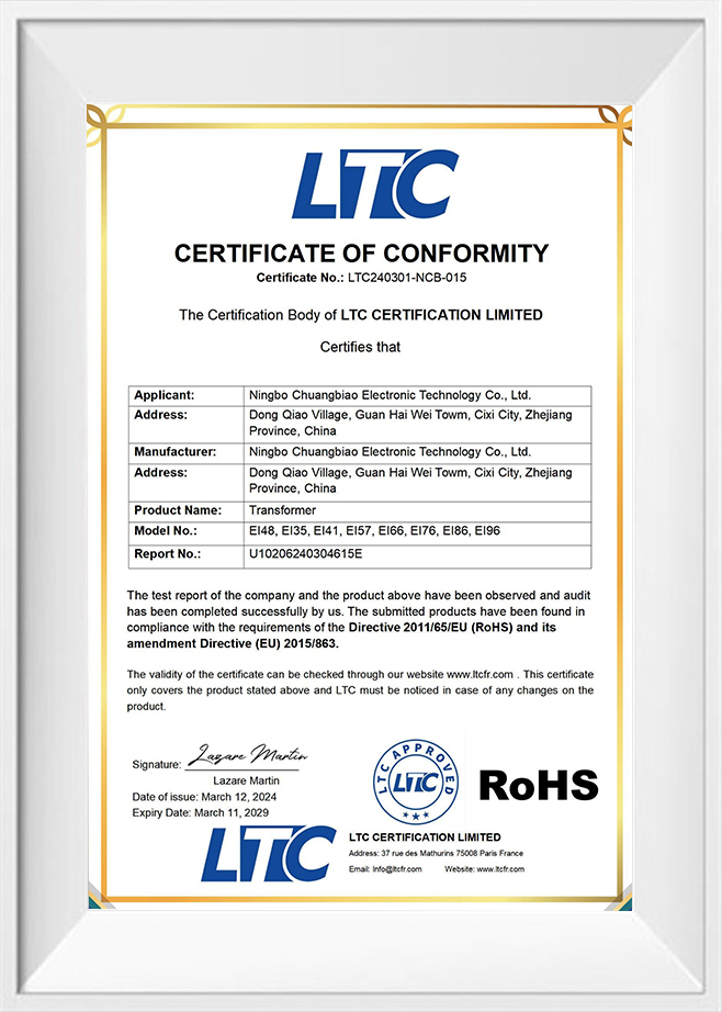 নিংবো চুয়াংবিয়াও ইলেকট্রনিক টেকনোলজি কোং, লিমিটেড উচ্চ কারেন্ট ট্রান্সফর্মারগুলির উত্পাদনে আইএসও 9001 গুণমান পরিচালনার সিস্টেমের মানকে কঠোরভাবে অনুসরণ করে যাতে প্রতিটি ট্রান্সফর্মার কারখানা ছাড়ার আগে ব্যাপক গুণমান পরিদর্শন এবং পরীক্ষার মধ্য দিয়ে যায়, আরওএইচএস পরিবেশ সুরক্ষা শংসাপত্রের সাথে সম্মতি জানায় এবং আন্তর্জাতিক পরিবেশ সুরক্ষা মান পূরণ করে। সংস্থার একটি শক্তিশালী প্রযুক্তিগত উন্নয়ন দল রয়েছে, যার সমস্ত সদস্যের পণ্য বিকাশ, উত্পাদন এবং গুণমানের নিশ্চয়তার সাত বছরেরও বেশি অভিজ্ঞতা রয়েছে, গ্রাহকদের ডিজাইন, সংগ্রহ, উত্পাদন, গুণমানের আশ্বাস, লজিস্টিকস, বিক্রয় বিক্রয় থেকে শুরু করে গ্রাহক পরিষেবায় বিক্রয় থেকে বিস্তৃত প্রযুক্তিগত পরামর্শ এবং পূর্ণ-প্রক্রিয়া পরিষেবা সরবরাহ করে, প্রতিটি লিঙ্ক সর্বোচ্চ মান পূরণ করে তা নিশ্চিত করে।